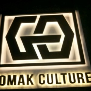 -갈바레이져 후 타공시트 부착으로 주간에는 글씨가 갈색으로 보이지만 야간에는 백색으로 보이게 되는 간판..