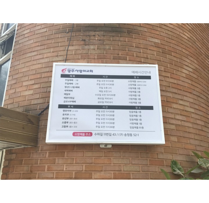 [교회간판] 사랑의교회 본문 -기존게시판 철거 후 재도장 및 보수-기존 예빼안내시간표 철거 후 재도장 및 보수 페이지 정보 작성자 관리자 댓글 0건 조회 51회 작성일 20-03-20 13:52 PREVIOUS[꽃집간판] 스노우벨 20.03.20 NEXT[음식점간판] 브룩스 수제햄버거 20.03.20 목록